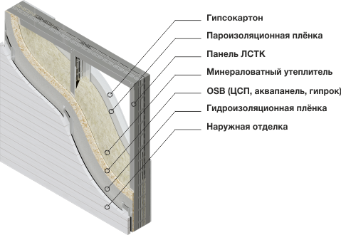 Длина: 100, 140, 190, 240 ммСтруктура стены ЛСТК